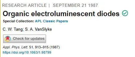 其实早在 1947 年,罗彻斯特大学的美籍华裔教授邓青云就在实验室里偶然发现了有机材料发光的现象,第一次摸到了 OLED 的 “门把手”;直到 1987 年,他和 Steven Van Slyke 用超薄膜技术做出了双层有机电致发光器件,同年 Eastman Kodak 公司的 Ching W.Tang 和 Steven Van Slyke 发表了 OLED 基本结构的论文,这篇被称为 “第一篇 OLED 论文” 的研究,才算正式把 OLED 从 “实验室好奇” 变成 “可落地的技术”。